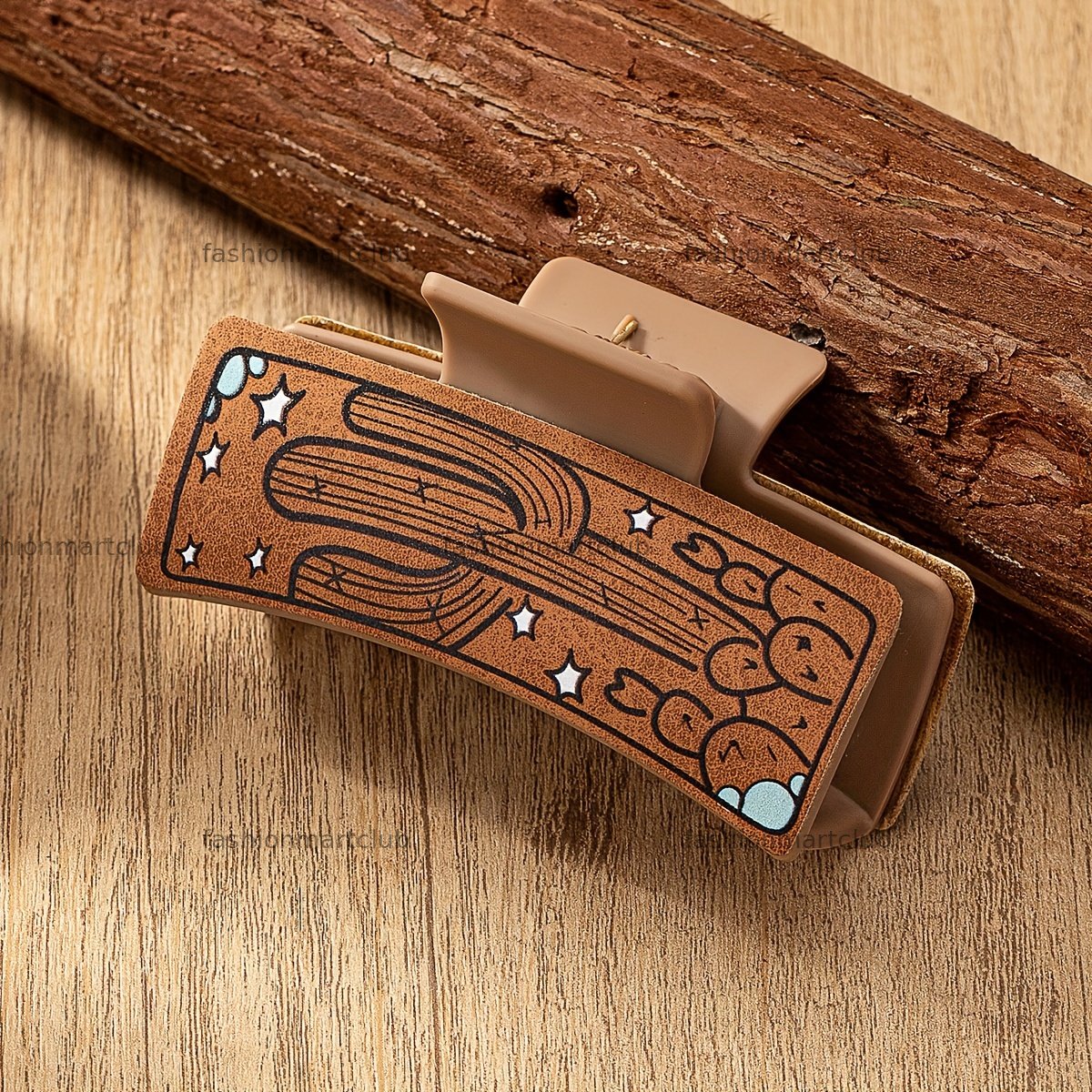 1 Pc PU Leather Western Cowgirl Style Cactus MAMA Design Acrylic Hair Claw, Hair Clip Accessories Gift Holiday Present For Wife Mother Friend