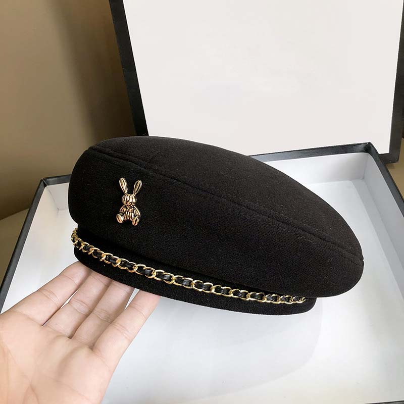 Chic British-Inspired Beret with Metal Chain - Cotton, Lightweight & Stretchy, Perfect for Valentine's Day - Embroidered Octagonal Hat for Women
