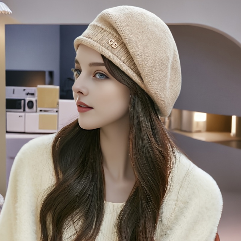 Chic Knit Beret for Women - Breathable, Elastic Fashion Cap with Vintage Artistic Design