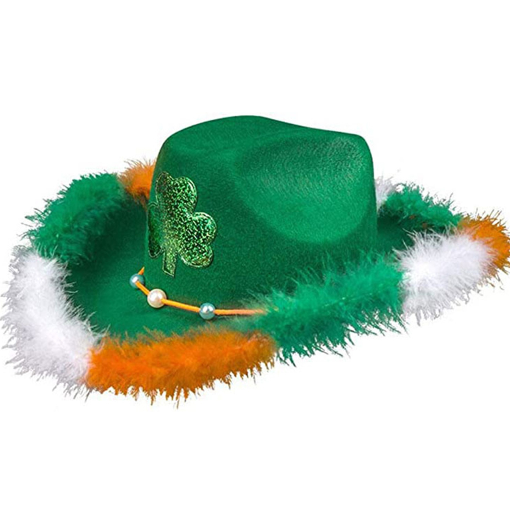 Women Cowboy Hat, Soft Non-woven Fabric Wide Brim Feather Clover Western Large Cap for Festival Party