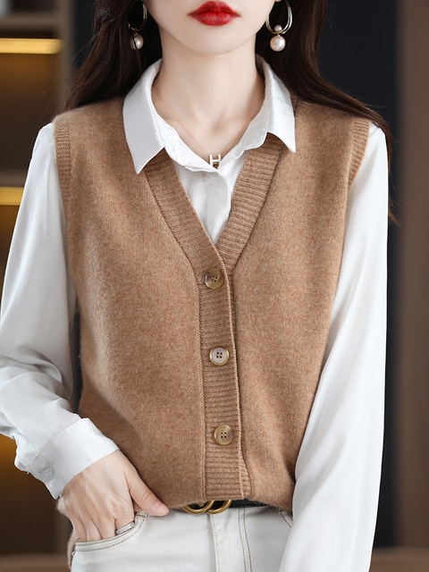 Loose Solid Color Sleeveless V-Neck Knit Vest