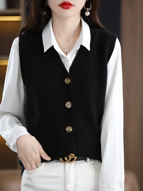 Loose Solid Color Sleeveless V-Neck Knit Vest
