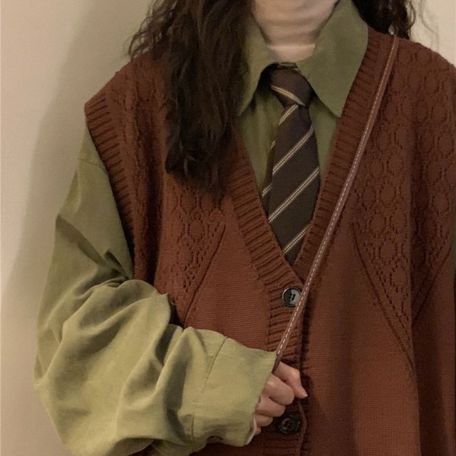 Preppy Baggy with Harajuku Elements for Elegant Autumn Streetwear American Retro Style V-neck Sweater Vest