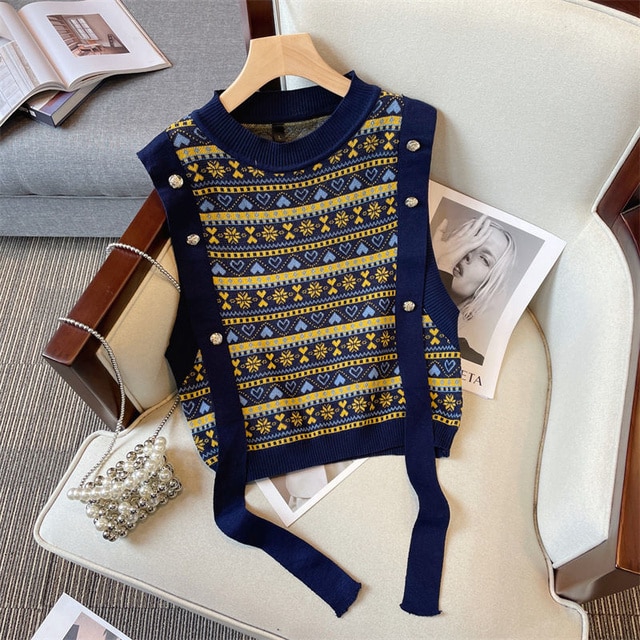 Women's Retro All-Match Sweater Vest - Preppy Knit Fashion with Simple Sweet Design