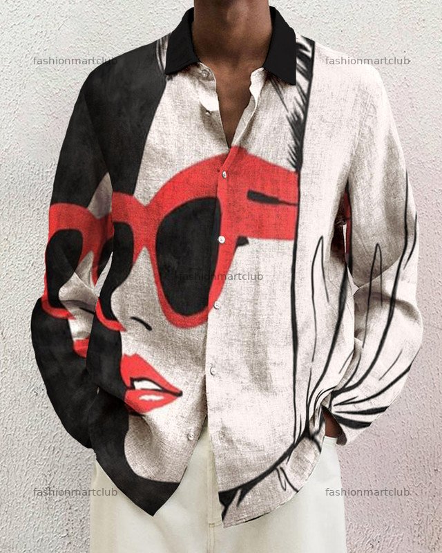 Men's cotton&linen long-sleeved fashion casual shirt aee1