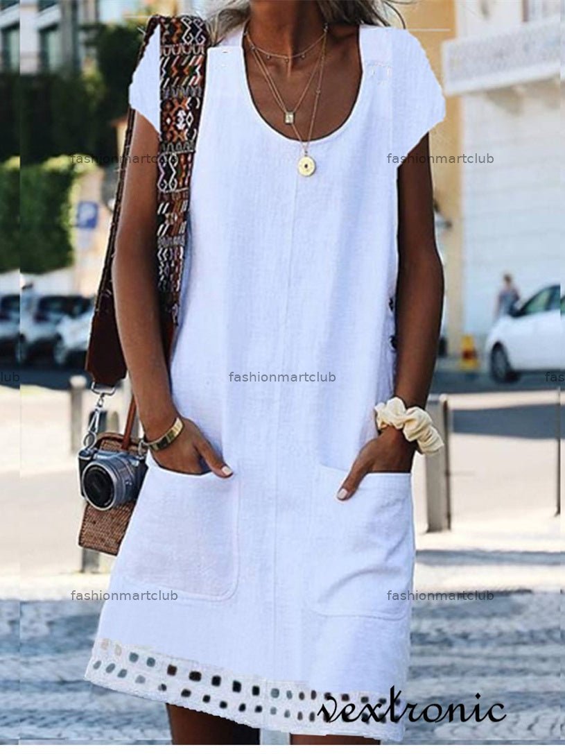 Women's Short Sleeve U-neck Solid Color Midi Dress