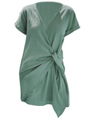 Date Night 3/4 Sleeve Wrapped Tie Waist Mini Dress