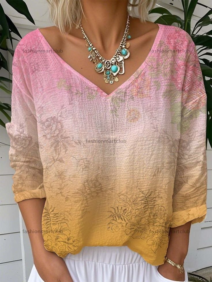 Women's Printed Casual Loose V-Neck T-Shirt