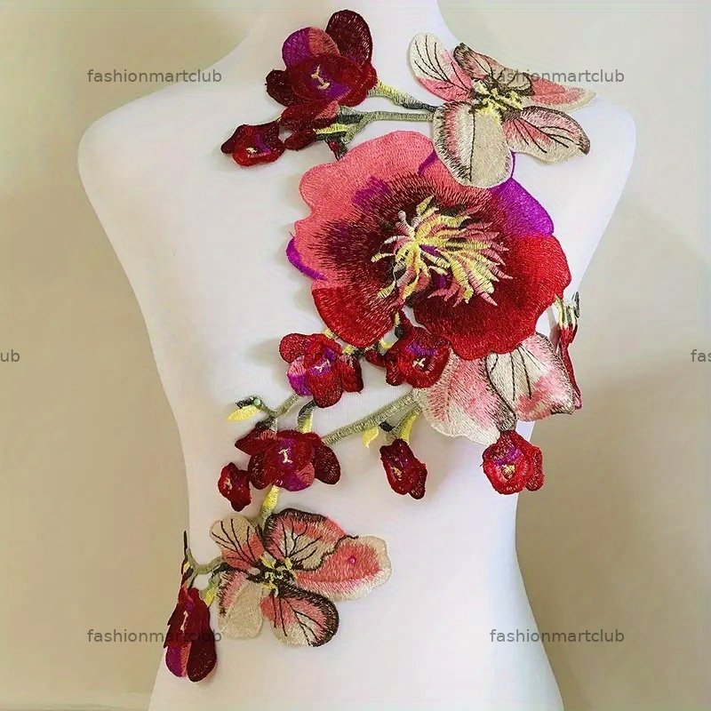 1pc Vibrant Peony Embroidered Applique Patch - 3D Floral Design, Water-Soluble, 22x14 inches for DIY Wedding Dress & Gown Customization