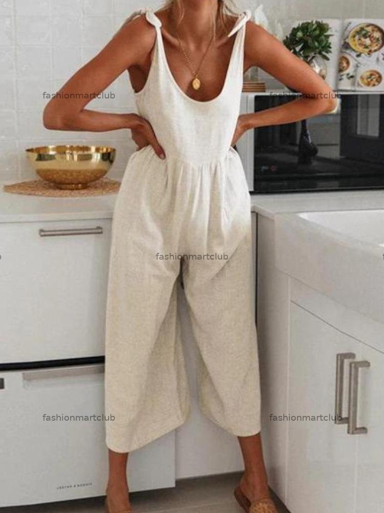 Cotton And Linen Round Neck Sleeveless Jumpsuit