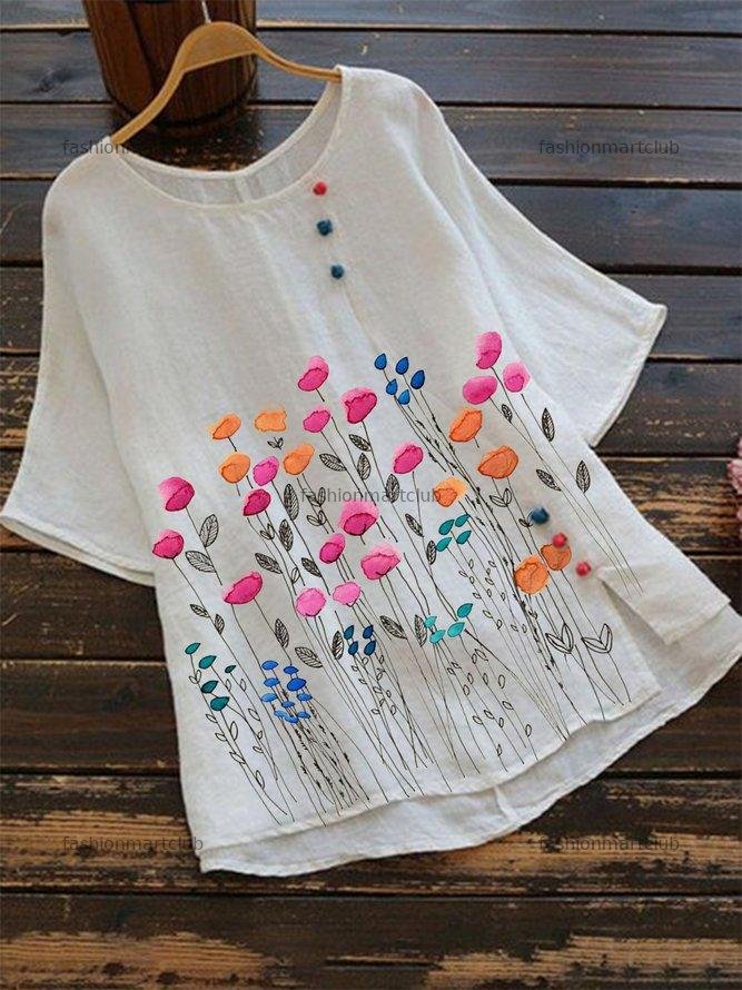 Cotton-Blend Short Sleeve Casual Shirts & Tops