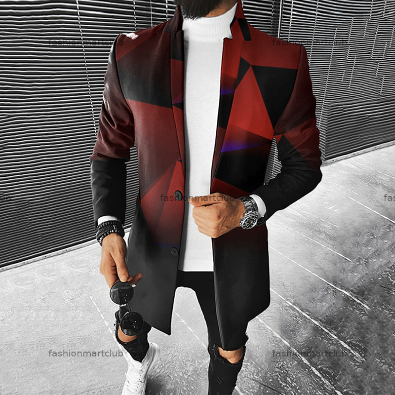 Fashion Men's Color Block Gradient Stand Collar Woolen Coat