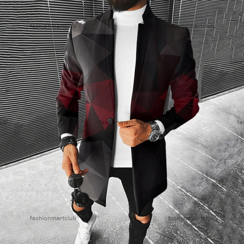 Fashion Men's Geometric Colorblock Wool Coat