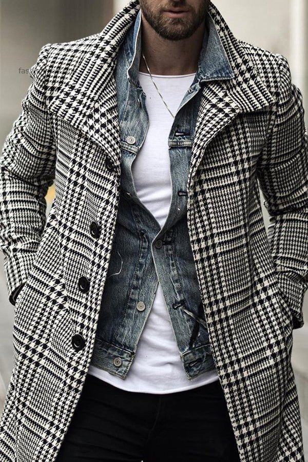 Fashion Plaid Lapel Coat Mid-length Coat