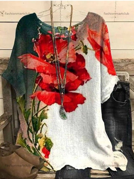 Floral Casual Loose Doll Sleeve Crew Neck Tops