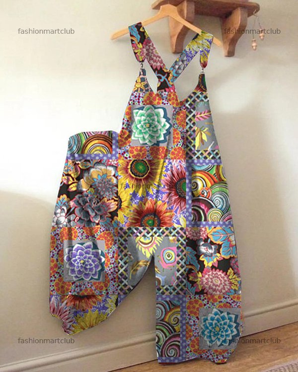 Floral Check Print Loose Jumpsuit
