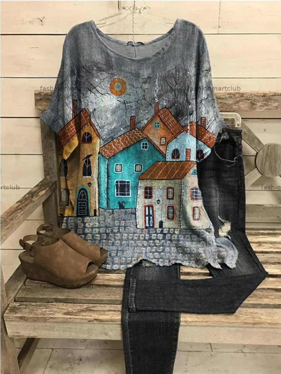 Gray Casual Tribal Shirts & Tops