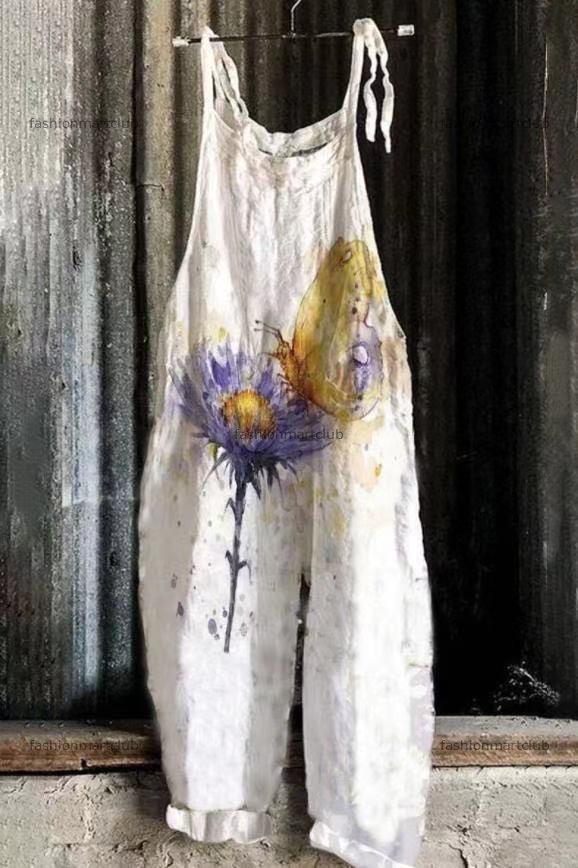 Honeybee Print Sleeveless Casual Jumpsuit