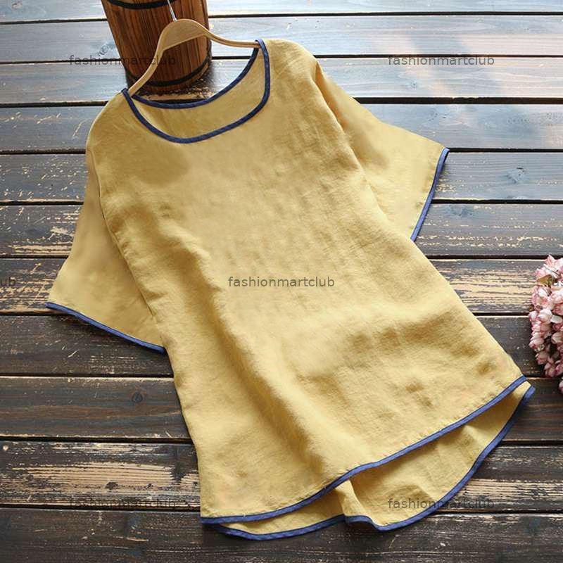 Large Blouse With Loose Crew Neck And Short Sleeves