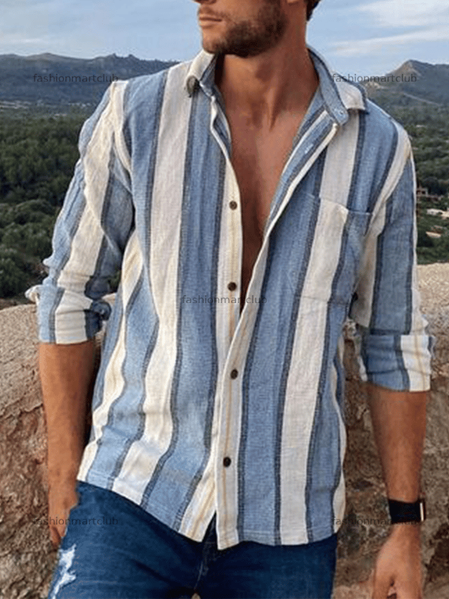 Striped Chest Pocket Long Sleeve Casual Shirt