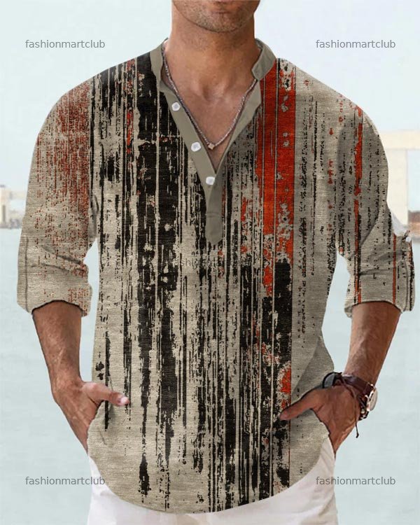 Men's Abstract Stand Collar Loose Short Sleeve Shirt