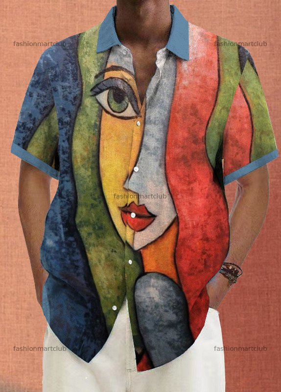 Mens Art Print Casual Breathable Short Sleeve Shirt c9cc