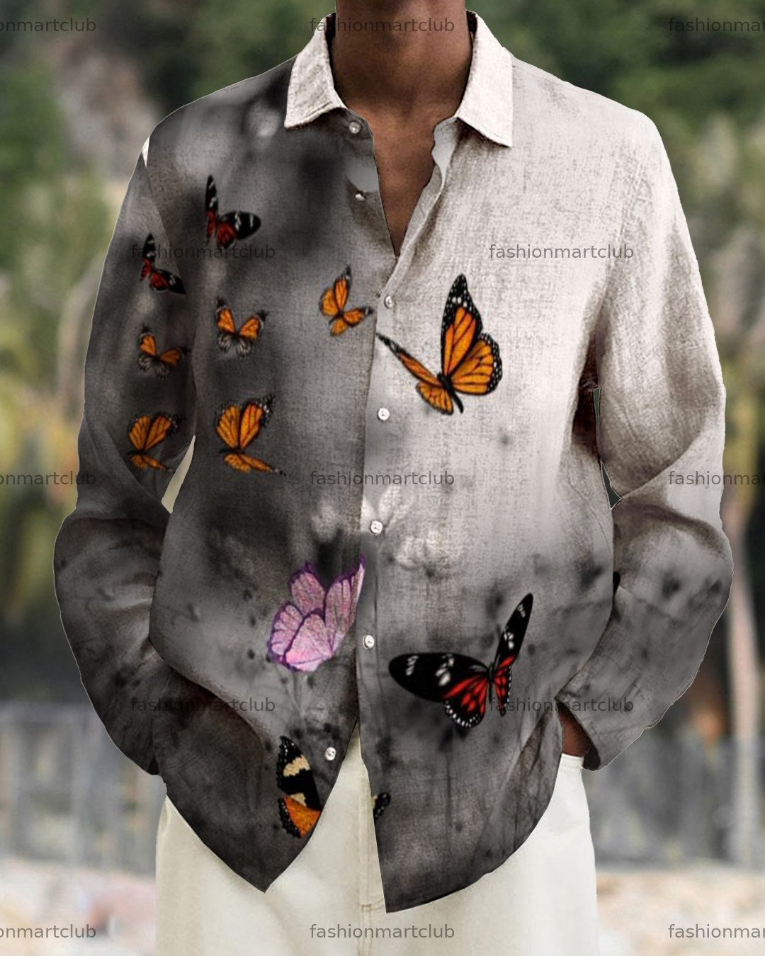 Men's cotton&linen long-sleeved fashion casual shirt 10b1