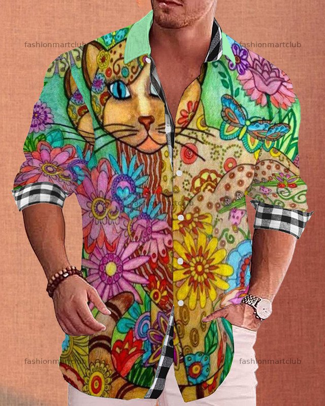 Men's cotton&linen long-sleeved fashion casual shirt 1d9e