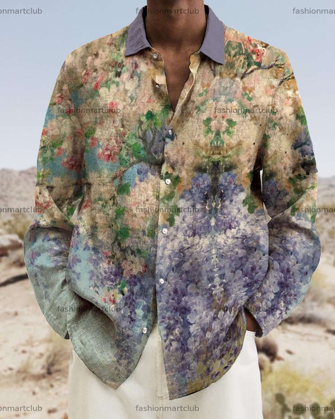 Men's cotton&linen long-sleeved fashion casual shirt 3360