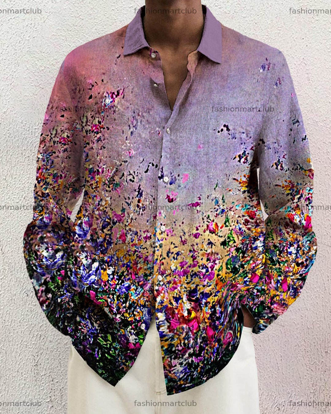 Men's cotton&linen long-sleeved fashion casual shirt 6c91