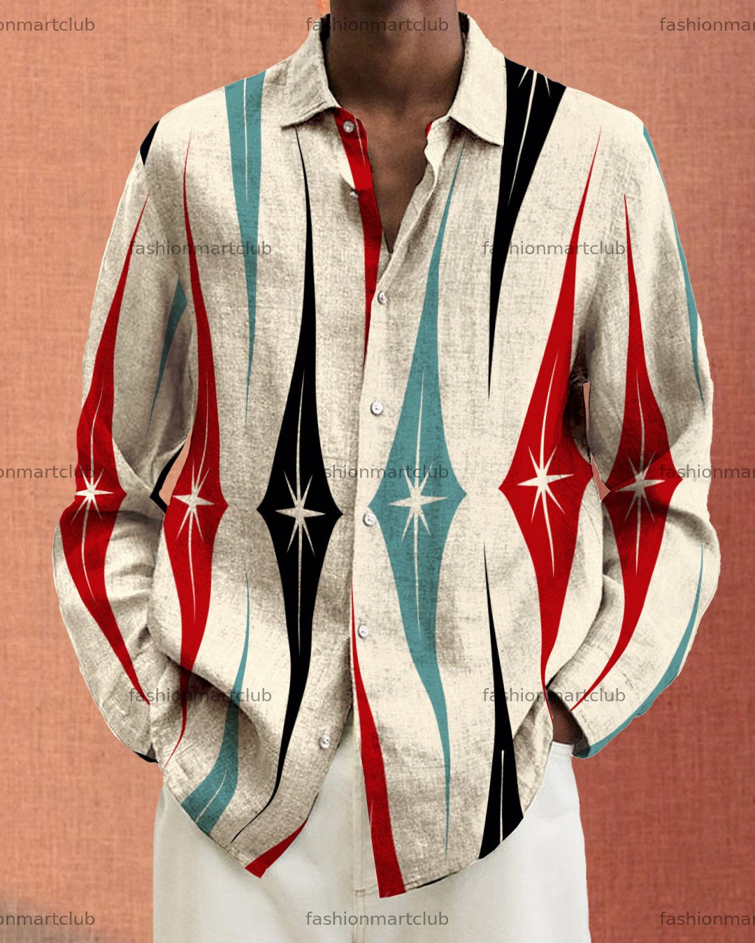 Men's cotton&linen long-sleeved fashion casual shirt 73de