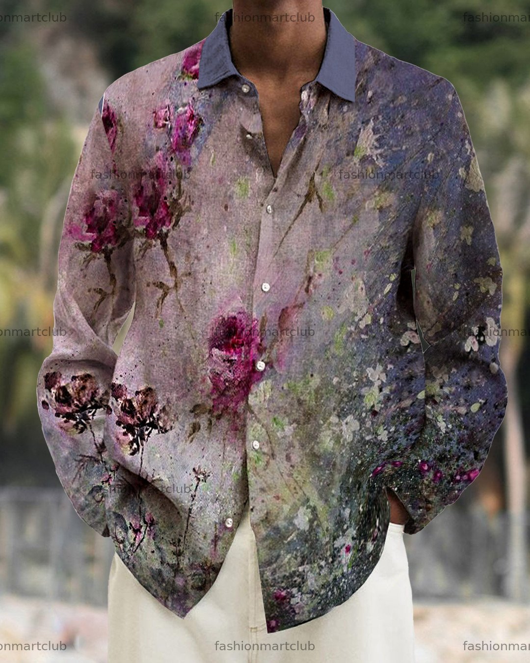 Men's cotton&linen long-sleeved fashion casual shirt 81d0