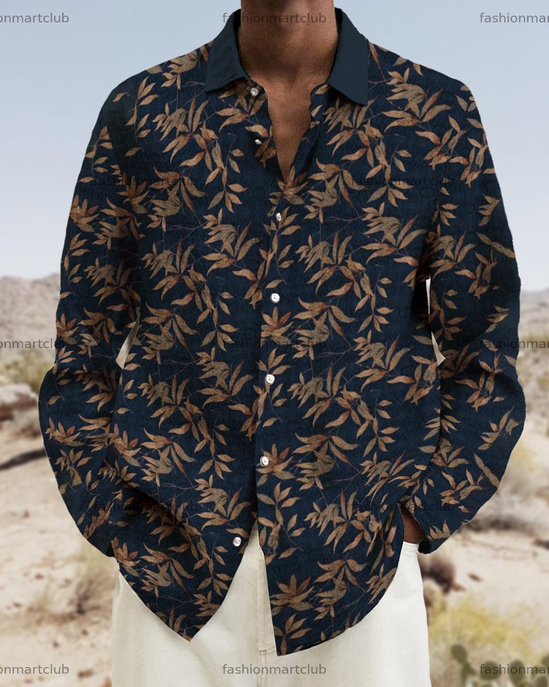 Men's cotton&linen long-sleeved fashion casual shirt a79b