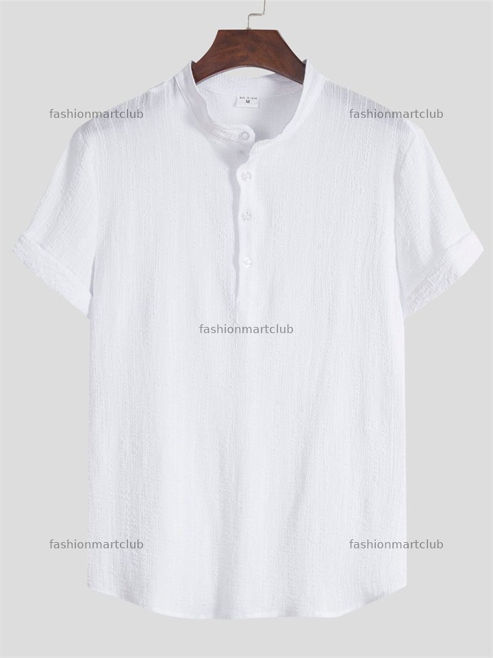Men's Cotton Linen Shirt Casual Linen Solid Color Shirt for Men