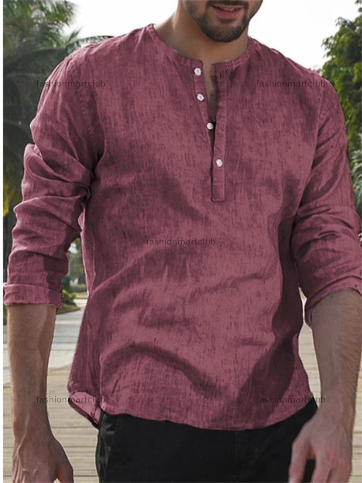 Men's Round Neck Solid Color T-shirt Simple Casual Bottoming Shirt Set Linen Long-sleeved Shirt