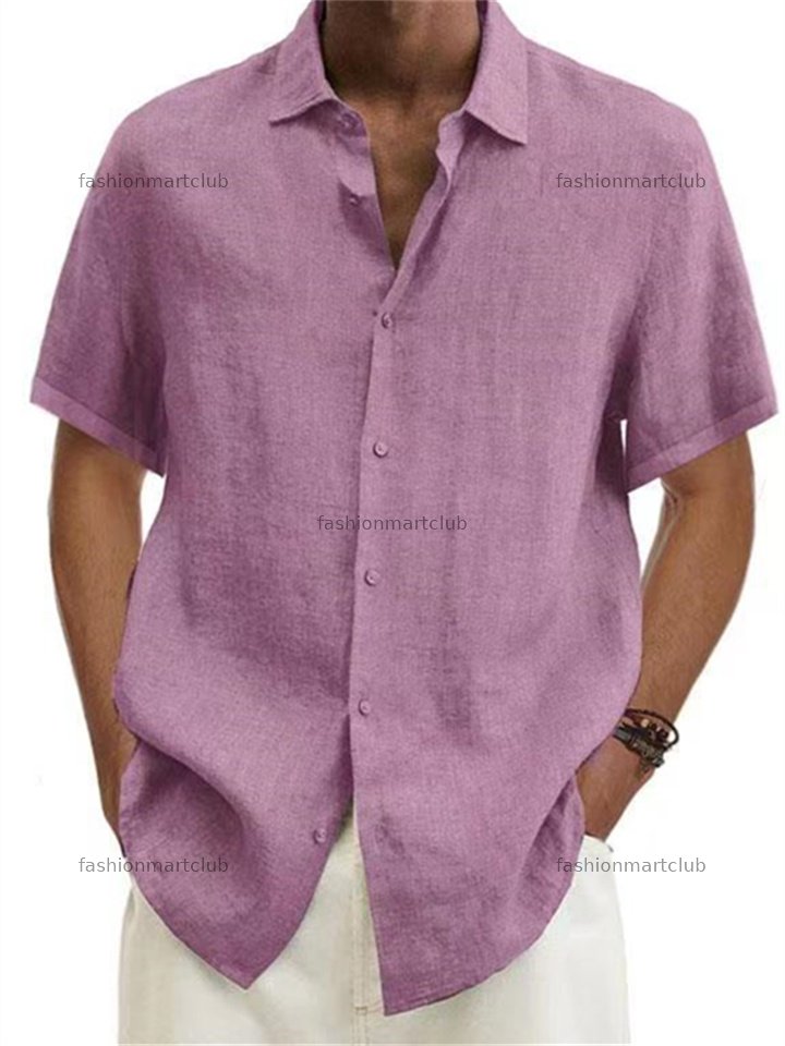 Men's Shirt Linen Shirt Casual Shirt Summer Shirt Beach Shirt Button Down Shirt Black White Blue Short Sleeve Plain Lapel Summer Casual Daily Clothing Apparel