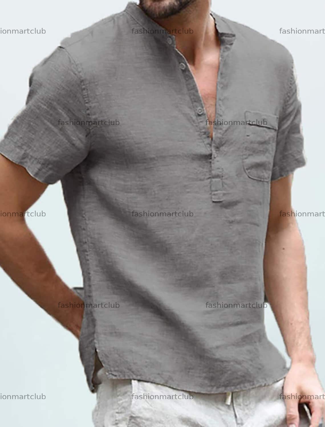 Men's T shirt Solid Colored Short Sleeve Daily Tops Cotton Basic Streetwear V Neck Gray Green White / Work Linen