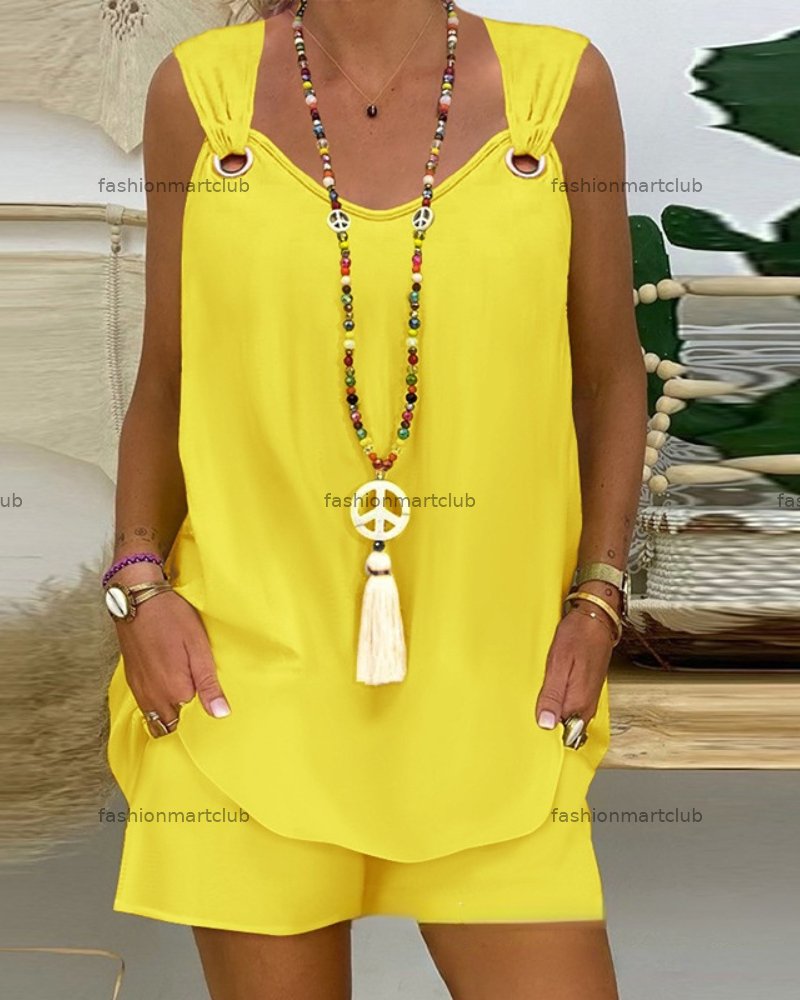 Sleeveless Casual Plain Strap Two Piece Set