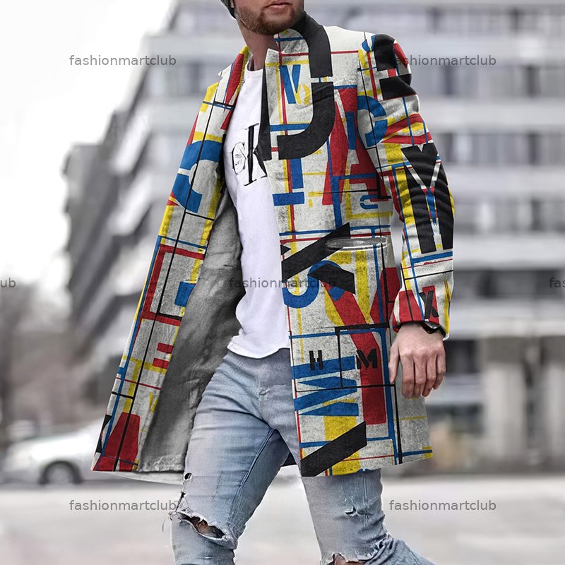 Street Geometric Letter Graffiti Print Coat
