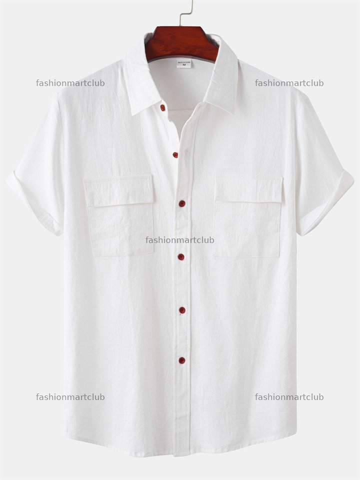 Summer New Men's Linen Short-sleeved Shirt Men's Square Collar Casual Cotton Linen Shirt Hemp Material Pure Color Half-sleeved Blouse