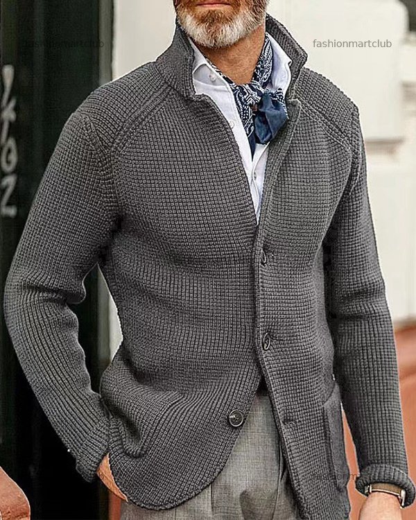 Vintage Stand Collar Cardigan Knit Suit Coat