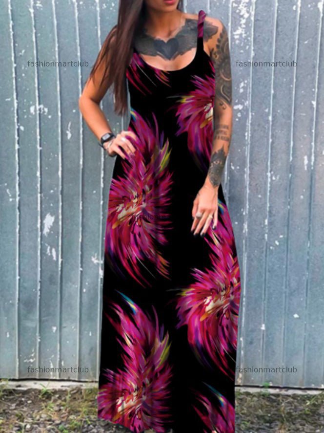 Women's Casual Floral Printed Sleeveless V-neck Maxi Dress