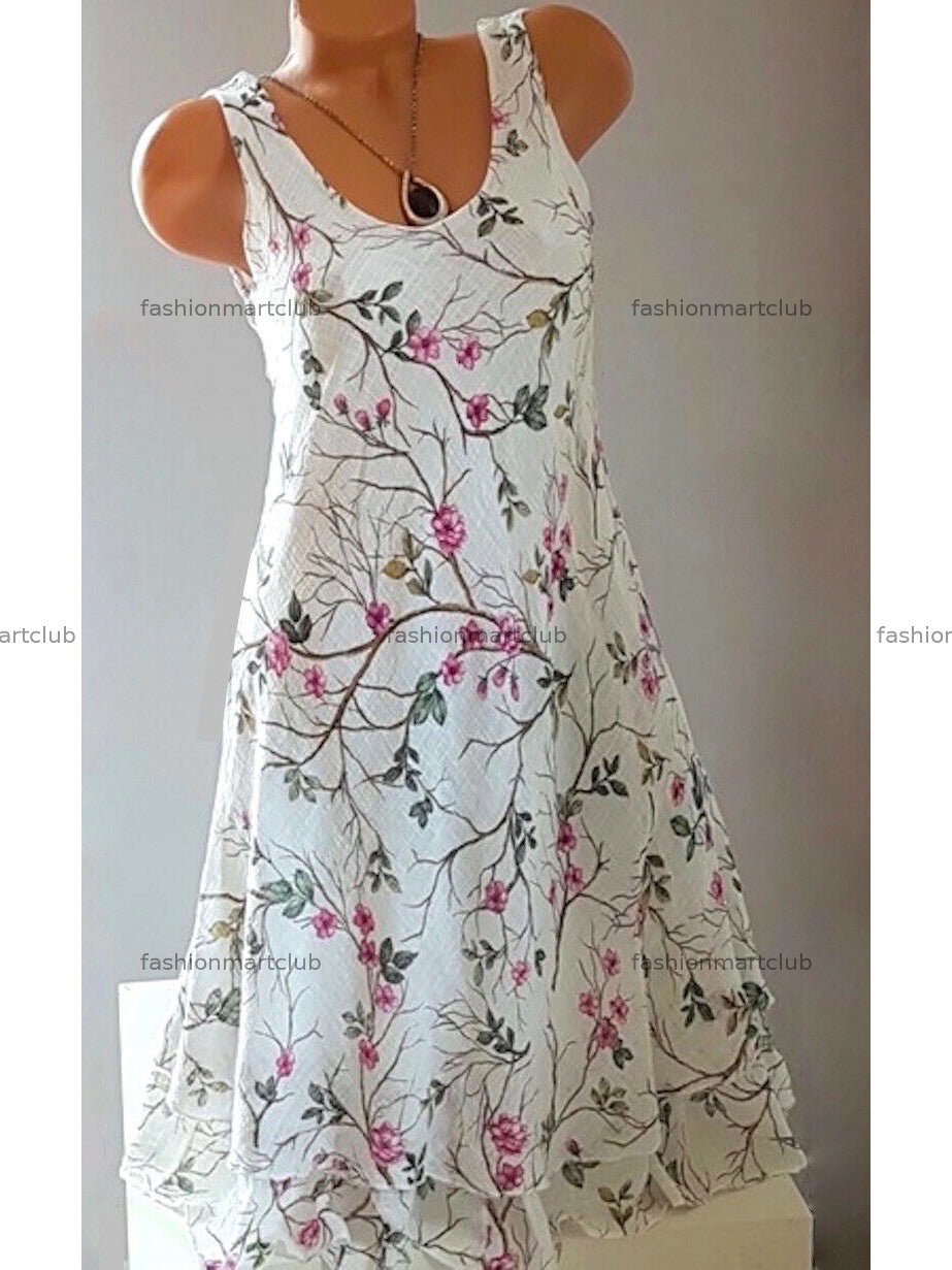 Women's Sleeveless Scoop Neck Floral Printed Midi Dress
