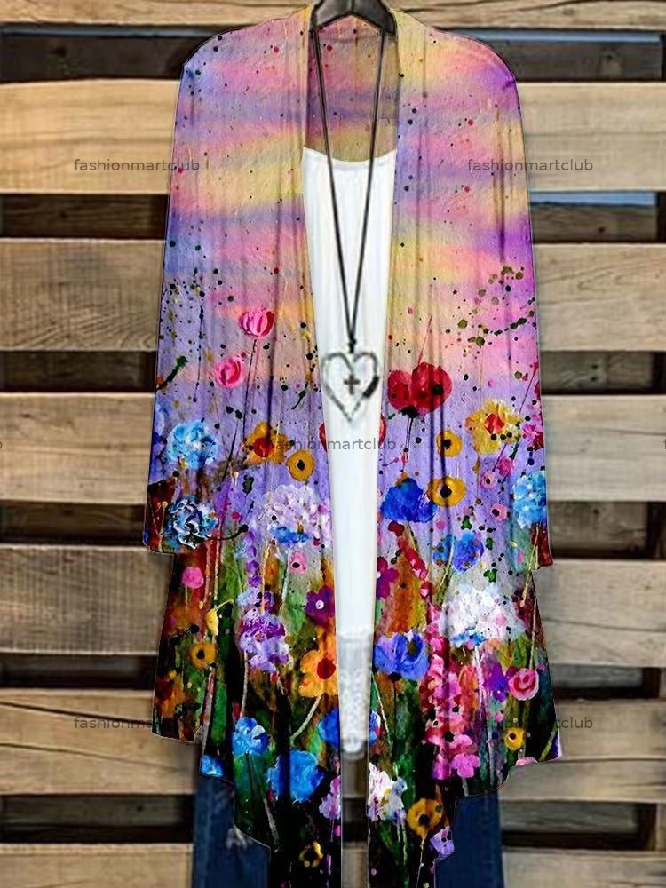 Women's Long Sleeve Casual Floral Printed Graphic Loose Cardigan Coat