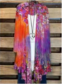 Women's Long Sleeve Casual Floral Printed Colorblock Graphic Loose Cardigan Coat