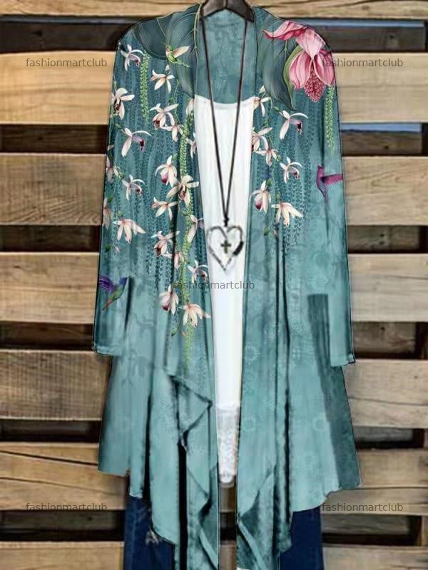 Women's Long Sleeve Casual Floral Printed Graphic Loose Cardigan Coat