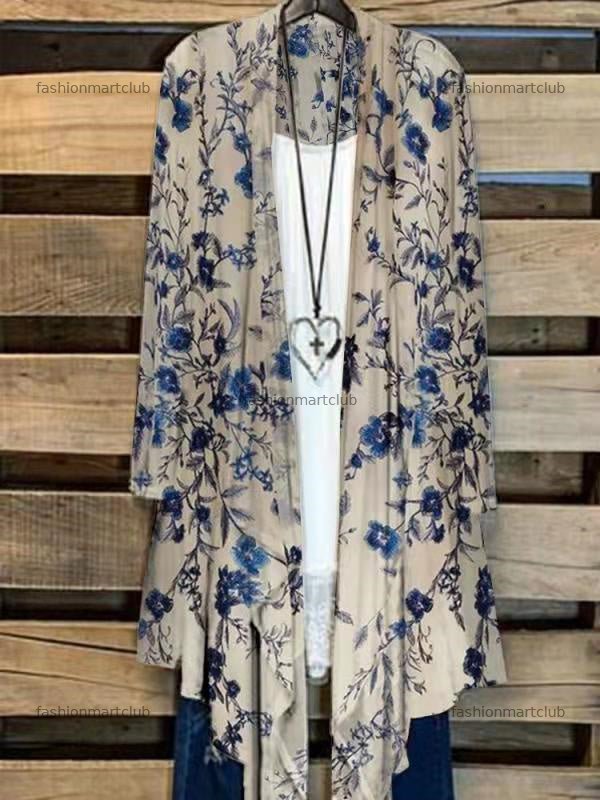Women's Long Sleeve Casual Floral Printed Colorblock Graphic Loose Cardigan Coat