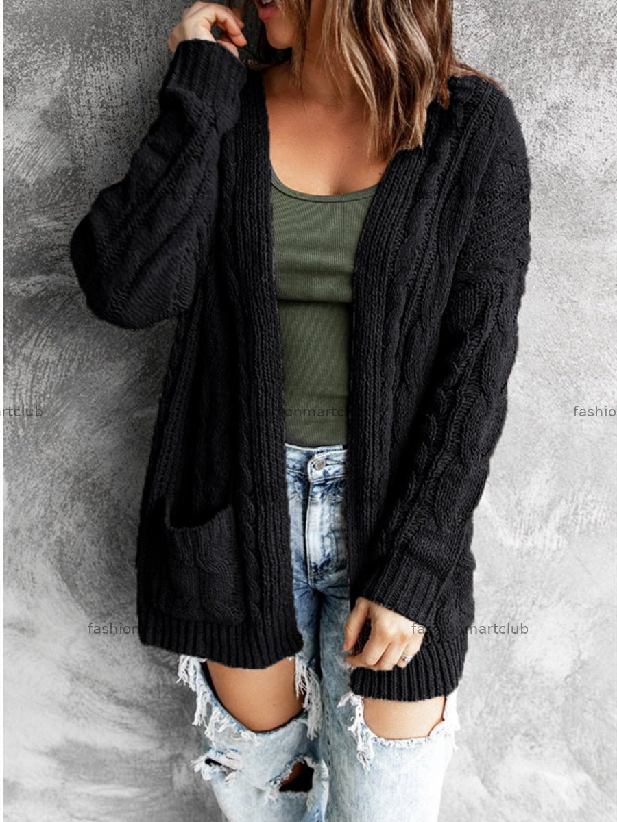 Women Long Sleeve Cardigan Soild Pockets Knit Sweaters Coats