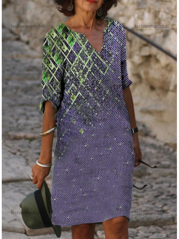 Women's Half Sleeve V-neck Graphic Printed Midi Dress