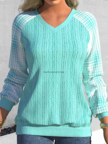Women Long Sleeve V-neck Graphic Printed Sweater Top